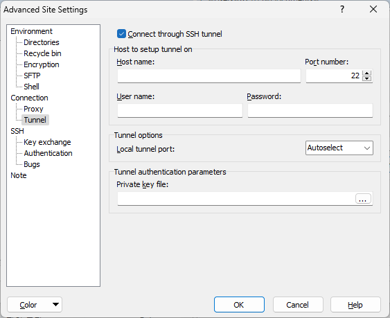 - WinSCP → [Advanced] → [Connection → Tunnel] 설정